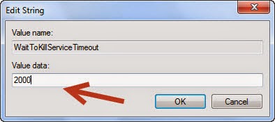 3 - من الجهة اليمنى نقوم بالضغط مرتين على القيمة WaitToKillServiceTimeout